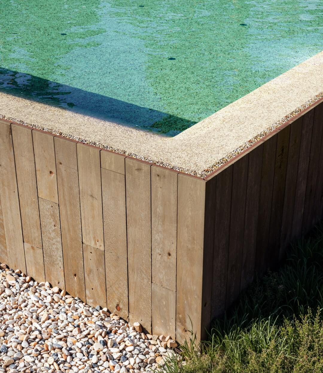 IL CONCETTO DI PISCINA FUORI TERRA VIENE RIDEFINITO, STRAVOLTO, STRATO PER STRATO, GRANELLO PER GRANELLO, PLASMANDO UN OGGETTO UNICO.
